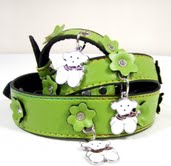 Krásný obojek ve veselé zelené barvě ve třech velikostech. Propracovaný obojek má řemínek ozdobený kamínky a efektním přívěškem. Uprostřed jako přívěšek roztomilý medvídek. Pro pejsky s obvodem krku: S: 19 - 25 cm M : 28 - 38 cm L : 34 - 44 cm
